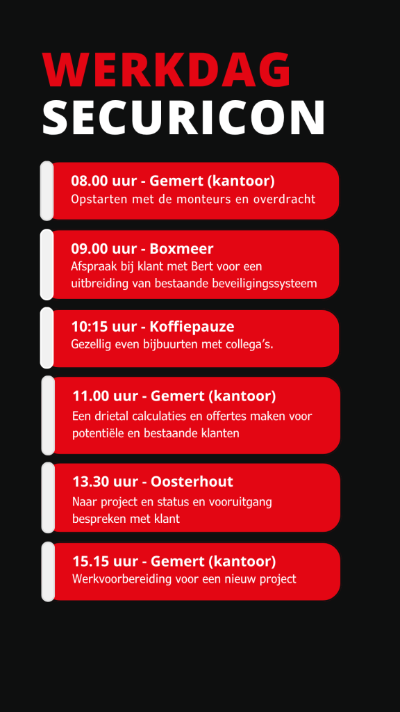 Als projectleider bij Securicon krijg je de kans om te werken in een betrokken en gepassioneerd team, waar jouw talenten en ambities worden gewaardeerd.